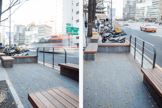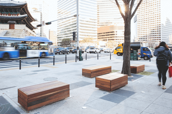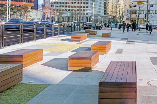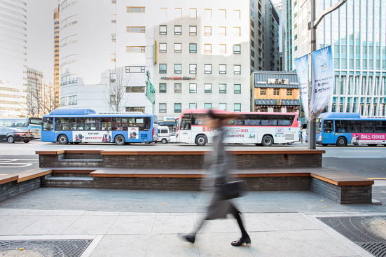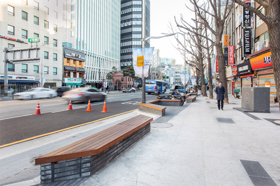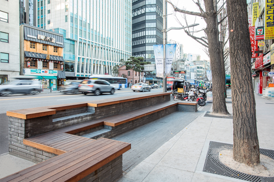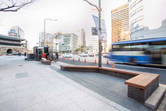 Its project tried to reflect the needs and opinions of local residents in line with the “public design for all.” As a result, the current Namdaemun area has become a comfortable resting place by expanding the width of the driveway and installing crosswalks, and creating a unified signage and shelter. In addition, improvements were made on issues that were previously pointed out as major problems such as well. It clearly established walking zones and separated and secured parking spaces for motorcycles from pedestrians, while organizing various obstacles that harm the landscape of Namdaemun. It also paid close attention to environmental design. In addition, the construction of the plaza will allow visitors to comfortably face Namdaemun, which had previously had to look at the road and the pedestrian path in a limited way.