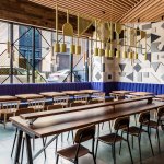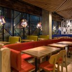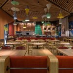 Nando’s Peri Peri Pike and Rose is a restaurant of dramatic forms and geometric complexity. The sleek selection of exterior surface materials brings unity to the overall experience of the interior space. Although distinct materials are used on each of the primary interior elements, these materials were chosen to be complementary and of modest contrast.