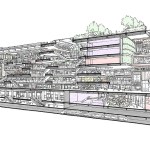 The underground ‘retail spine’ is designed to become an attractive destination. A series of sunken plazas extend out to the street level, punctuating the ground level and bringing natural light into the subterranean areas. The basement retail area is an impressive double height space of up to 9m – a unique underground space with natural light that would normally only be achieved at ground level.
