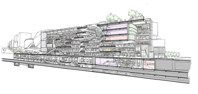 With two underground railway stations embedded into the site, connectivity is one of the key design drivers. The design includes a central glass box corridor with key entrances positioned directly on top of one of the railway tracks, providing a feature passageway for commuters to navigate through different levels of the scheme.