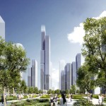 For the “Nanjing Financial City – Phase II” the architects von Gerkan, Marg and Partners are designing an ensemble of five high-rise buildings. The plan is to create a business district with a total of 786,000 square meters of gross floor area. The 65,000 square meter site comprises offices in combination with an upmarket infrastructure for conference and meeting facilities, as well as serviced apartments and shops. A green axis runs through the site from north to south, dividing the plot into two parts; the two outer areas (A and C) are to be lined with high-rise buildings along the road frontages in accordance with the statutory building lines. The third area (B) will be a landscaped canyon in the midst of the dense high-rise building structure which, with its squares and sunken courtyards, will become an integral part of the retail zone.