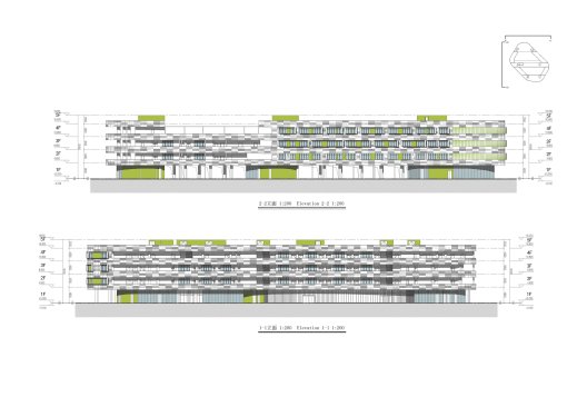 Despite the challenging site constraints and the strict local regulations, the design is both efficient and iconic, breaking the conventions of local school design and focusing on stimulating learning spaces for the students. Accounting for the offsets from primary and secondary roads, a future metro line and an adjacent gas station protection area, the leftover footprint for classroom program is only 40% of the total site area. Unlike conventional school buildings in China where the teaching units and public functions are usually detached, in Hexi Primary School the school complex is gathered in one compact volume result of the extrusion of the remaining available area.