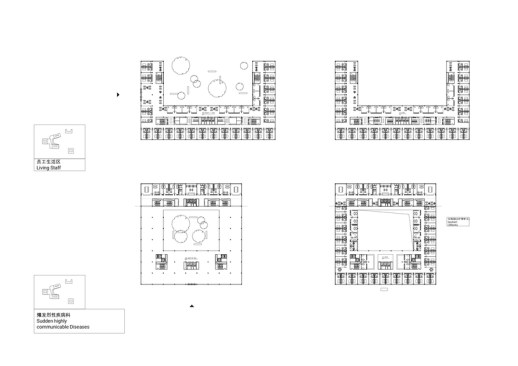 By taking advantage of the vertical space, the centre area of the building group is used as the pollution area, offering a safe and comfortable evacuation square for medical workers and common patients of general hospital. In addition it protects the clean and independent management of the general hospital. The circulation access for infection patient is designed in the bypass road to avoid possible contamination. Offering a good external accessibility helped create a defined separation of the internal circulation.