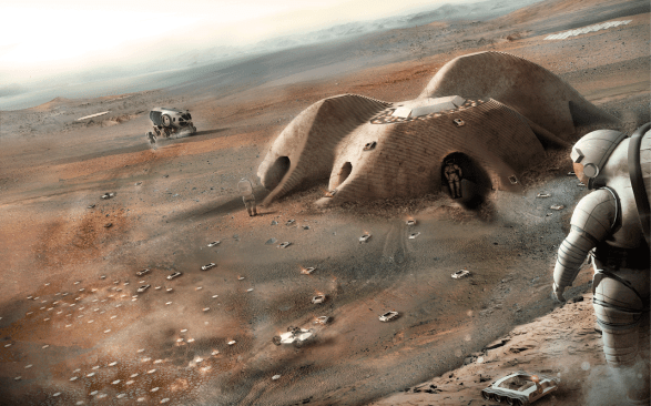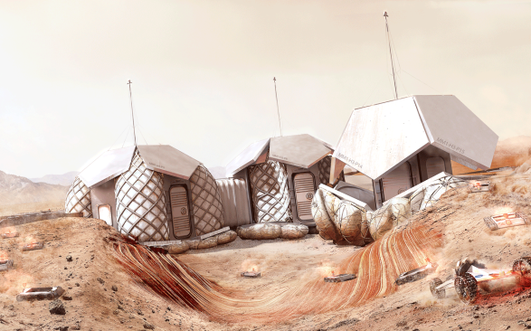 partners – envisions a robust 3D-printed dwelling for up to four astronauts constructed using regolith – the loose