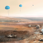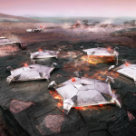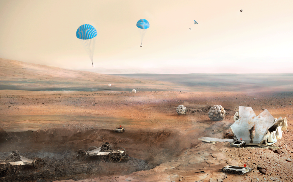 Three different kinds of robots are parachuted to the surface of Mars, each performing a specialised task within
