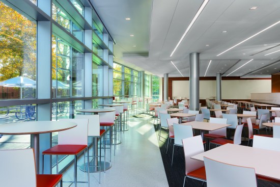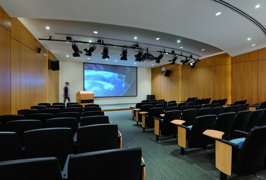 The new facility includes: engineering collaboration space; a full-service cafeteria, food preparation accommodations, and dining and serving areas; media production services space; a multi-education and training center; a Strategic Relationship Office (SRO); education and public affairs space; a theater, conference and meeting spaces; and general shared building support areas.