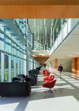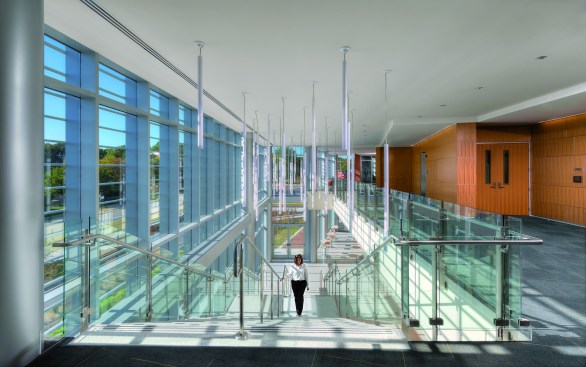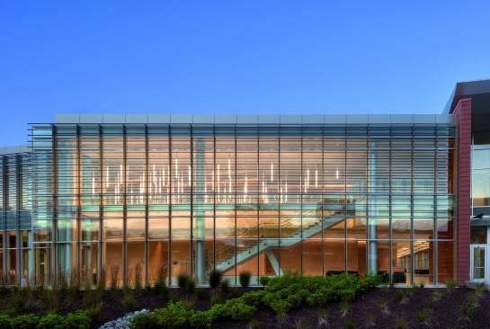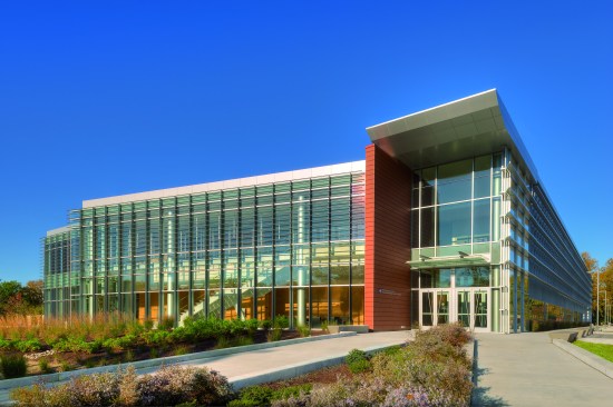 This facility is the second project of what is expected to be a phased, 20-year modernization program that includes replacing aging structures with new research and development facilities. The facility is registered with the USGBC and it is anticipated that it will achieve LEED Gold certification. Sustainable design features include geothermal heating and cooling, water efficient landscaping, and sun control devices. The entire project was designed using Revit (BIM) modeling.