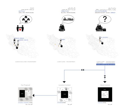 The client of this project had migrated to Tehran from a region with an introvert and traditional culture at a young age and had a traditional tendency. He bought two adjacent pieces of land in the village and decided to combine the two and build a villa at the center. The introverted mental background of the client in opposition to the extrovert context of the northern regions of the country was the main challenge.