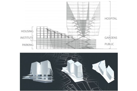 We proposed an alternative project model to the client, one based on a private-public partnership. The project would expand and become a mixed-use complex jointly owned by the socially-minded city government and private investors. It would include a cancer hospital, public parking, housing for low income families, amenities such as shops, gardens and recreation. In addition, an adult education center would provide training for the hospital staff.