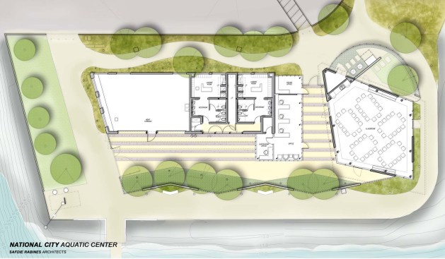 Safdie Rabines Architects is pleased to announce completion of the much-anticipated National City Aquatic Center. Located fifteen miles north of the U.S./Mexico border in southern San Diego County, CA, the single-story, two-structure center marks the realization of National City’s long-term goal to replace a makeshift facility housed in trailers for over a decade.
