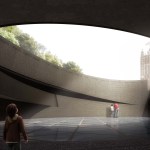 The subtlety of the design of the UKHM gradually reveals the power of the opposing forces that created the descent into a horror of hitherto unimaginable scale, and a humanity of unlimited compassion and selfless commitment. To create a memorial that is commensurate with its prominent site, and appropriate to content of such gravity, the architecture most suitable to serve the purposes of remembrance and caution against the repeat of intolerance, is one of restraint, yet notable form. Expressing the magnitude of the tragedy and the consequences of indifference to intolerance will have achieved the purposes of the UKHM and Britain’s promise to remember. The inclusiveness of this memorial is also intended to rekindle hope for all those threatened, regardless of belief, ethnicity or gender, for it is manifestly clear that the bell tolls for all of us, even if at times it seems to toll only for others.