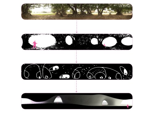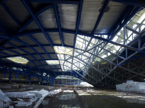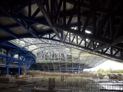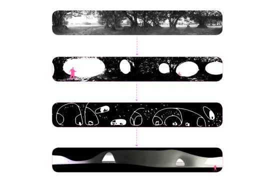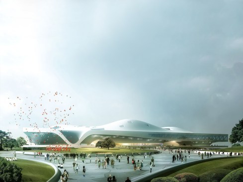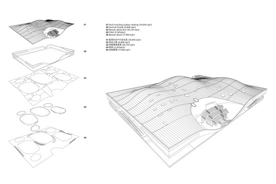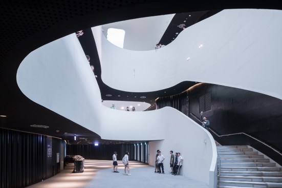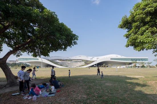 Inspired by the local Banyan trees with their iconic crowns, the vast, undulating structure is composed of a skin and roof, and connects an extensive range of functions. The curved steel structure was built in cooperation between a local and a Dutch shipbuilder. Underneath this roof is Banyan Plaza, a generous, sheltered public space. Residents can wander through here day and night, practice Tai Chi or stage street performances along walkways and in informal spaces.An open-air theatre nestles on the roof where the structure curves to the ground, with the surrounding park forming the stage. Designed with the subtropical climate in mind, the open structure allows the wind to blow freely through Banyan Plaza. The seamless flow between interior and exterior creates opportunities for crossovers between formal and informal performances.