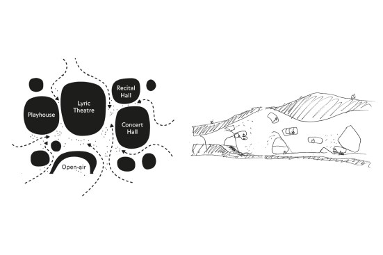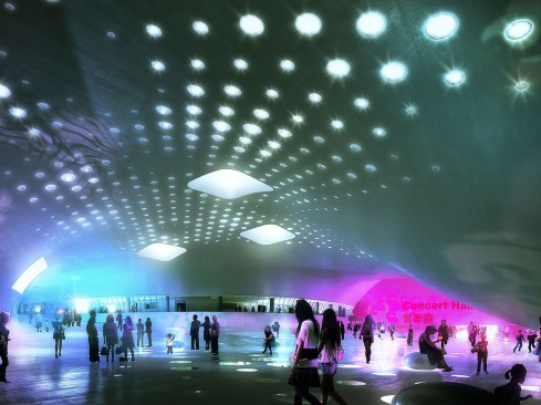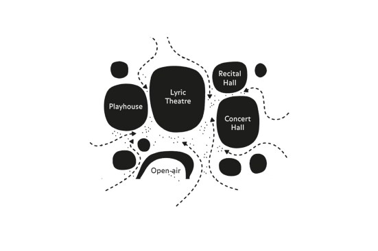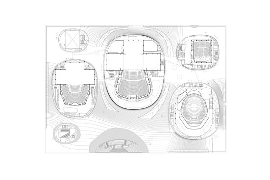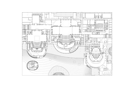 Different theatres such as the 2000-seat concert hall and 2250-seat opera hall are located in the five cores or ‘legs’ of the building where the structure meets the ground. The cores connect with one another via foyers in the roof and an underground service floor which houses the backstage area of each theatre.