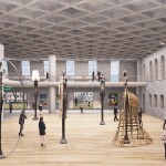 Our project turns the corner in a ‘contextual’ manner, respecting the typological vocabulary of the museum courtyards and in that way our extension naturally seems to fit in the master plan, conceiving a third courtyard. However, in contrast to the existing building, the new courtyard is now enclosed, and in that way provides a set of diverse exhibition spaces and scales. On the ground floor we have placed the main new gallery, with a grand scale that now allows for the possibility of carrying breathtaking shows with exceptional height. The lighting with both spotlights and skylights provides ideal flexibility for the collection and future shows. The presence of the main building’s history is here always latent. We construct a new wall in front of existing facade, using a neutral palette of concrete for the exhibition hall, while respecting the existing window geometry. A surprising element of the expansion is the surface treatment of the new building. In line with the tradition of rustication, the massive stone at the base of the existing museum, and becoming a didactic expression of the structural diagram within the building, we have infused these striations with a degree of abstraction, and created now a monolithic image in concrete. Nevertheless, these scalloped precast concrete panels of the facade echo the stone and masonry construction of the existing building. Inside, a warm wood provides a more intimate atmosphere to the galleries.