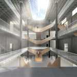 The corridors and the projected balconies around the central atrium will encourages people to flow within this public building uninterruptedly. The delicately assembled fragmented volumes will create logical passages in between, which will allow the visitors to break from long corridors and also offers the flexibility about use of space. The proposed design promotes openness and boost public engagement. Visitors will be able to enjoy and appreciate the exhibits and the building itself while walking through these simple magnificent but generous corridors.