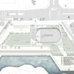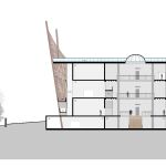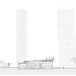 The museum is sitting on a podium shape which is influenced by site's geometry as well as waterfront and the various direct and secondary access routes to the central park.