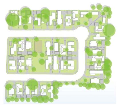 The market-rate homes, constructed with SIPs, rely on passive and geothermal heating and cooling, solar arrays, and other measures to achieve net-zero energy use. Affordable units feature modular construction with 2×6 exterior wall framing and will include solar panels or solar-ready wiring, depending on whether additional grants come through. All the 1,000-square-foot to 1,800-square-foot homes are stylishly modern, with metal roofs and stucco, fiber cement, and wood exteriors.
