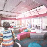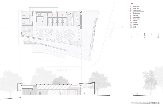 The new center will be located at the well-trafficked intersection of Fayetteville and E. Lawson streets at the northwest corner of the campus, making the building a university anchor and a bridge between the school and the local community. “It’s strategically located in a place where the students who are off campus can get to it quickly and safely,” says Evoke co-founding principal Teri Canada, AIA.