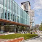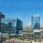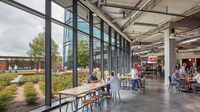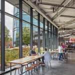 Sloping glass panes define the main tower and create a sense of movement across the building as day shifts to night. The transparent glass facades reveal the activities on every floor to passersby, while giving employees sweeping views of the city. The architecture draws inspiration from NCR’s mission to create an exciting, forward-thinking place to work. The sequential experience of users is consciously shaped from the street-level entry hall, to an amenity-rich sky garden, to the tower’s next-generation office environment that offers flexible work and meeting spaces. The resulting new headquarters promises a transformative workplace to foster an open, engaged and highly collaborative culture and inspire tomorrow’s innovative thinkers.