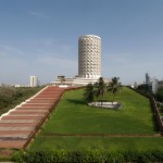 The Nehru Centre in Mumbai, a mixed-use commercial-cum-convention centre, has been designed as a living memorial to India’s first Prime Minister, Jawaharlal Nehru. One of our most significant early year projects, the centre, completed in 1985, is designed as a cylindrical tower that rises from the apex of a sloping incline, which also serves as the garden and roof of the auditorium. The sloping garden is a reference to the great Mughal tradition of courtyard gardens and agriculture — the backbone of Indian economy. The spiralling tower symbolises the growing modern nation and the aspirations of Nehru for a free India.