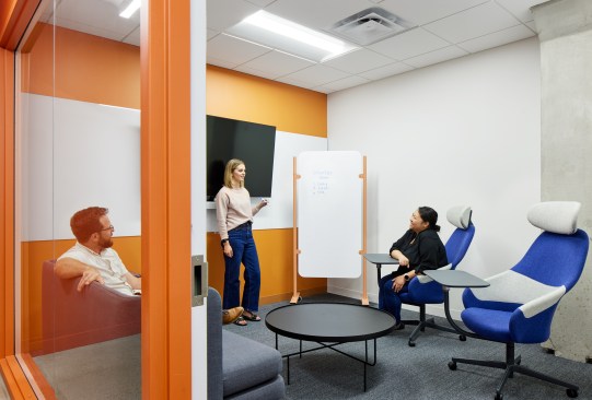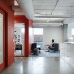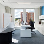 The design of the space supports a modern office. The flexible workspaces support open and closed collaboration as well as creative spaces for ideation and meeting. Office spaces are full of glass and connect to the team spaces and are filled with light.