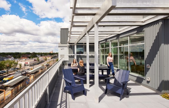 The rooftop deck has views of downtown and the cathedral which make it a wonderful space for all to use.