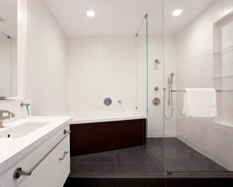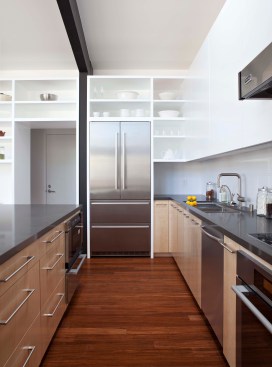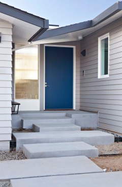 In respect of the neighbors, a partially-submerged lower level was designed with a pulled-back floor plate to create a light-filled atrium. In conjunction with the mechanical engineer, Klopf designed a net-zero energy home featuring insulated concrete forms, structural insulated panels, high-performance windows, cementitious siding and a solar photovoltaic system sized to cover all the energy usage. The new open and light house offers a connection to nature while maintaining privacy.