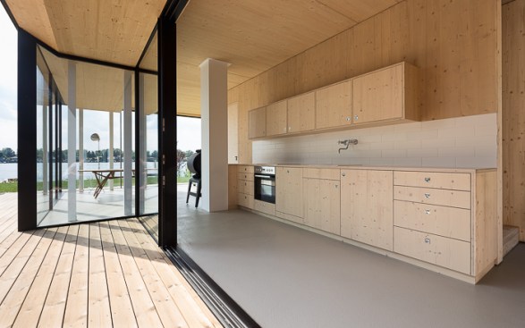 The Neufeldersee-a small lake about 30 minutes away from Vienna -offers an ideal space for summer recreation between Leithagebirge and High-wall. Located right on the water’s edge, the building is adjacent to the surrounding garden-like structure. The center of the building is the patio, which is enclosed by three sides of the building and only open towards the shore.