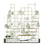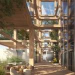 The central idea is for the project to be conceived more as a ‘community’ rather than a building, one that is in harmony with its surroundings, and that notably increases the green coverage ratio by lifting itself so as to provide space for a beautiful ground floor park and by adding multiple public gardens at different levels. The timber grid and the vegetation will help to further develop a true ecological approach, providing young people with open spaces in which to enjoy clean breathable fresh air, rich natural elements and sunshine filtering through foliage.