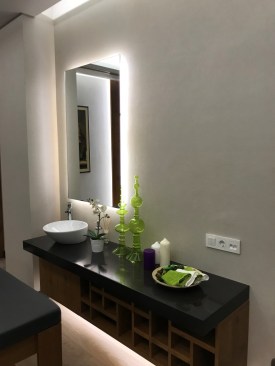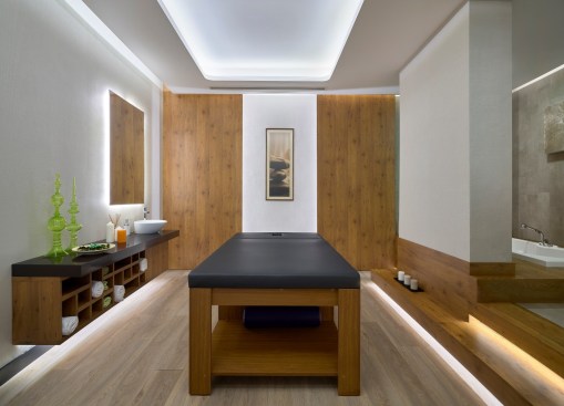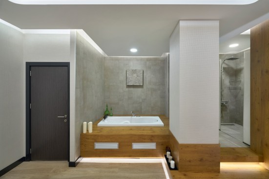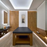 The bamboo wood veneers and hidden lights used in the massage rooms created a relaxing and soft environment. The elevation required for the jacuzzi was also provided by the level differences created in the room’s floor.