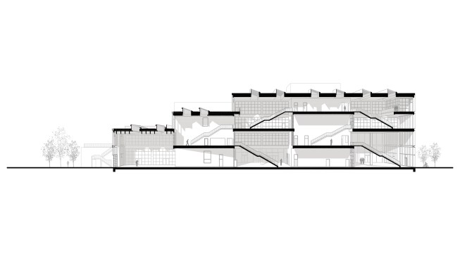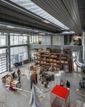 The intentional simplicity of the design is a detailed response to the school’s need for functional and robust spaces. The completed building allows the tutors to experiment with new and contemporary ways of architecture education, while at the same time providing a stronger spatial identity that matches the ambition of being one of the best architecture schools in Europe. The new building is the school’s best showcase allowing activities to become visible to the public, just as the spatial organization and interior transparency makes studio activities visible and present to all the students. From its former spaces hinting at individuality, this is architecture encouraging communities and synergies.