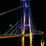 New Automobile Bridge over the Dnieper River in Zaporizhia city, Ukraine after last 20 years active construction officially open in January, 2022 by president of Ukraine Volodymyr Zelensky.