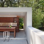 The New Canaan Residence is nestled into a lush hilltop site in this forested part of Connecticut. The house was designed to engage the landscape and immerse the occupants in the full range of environments that the site offers. What the completed house doesn’t show is its modest beginnings: this is a renovation of a 1950s house which had a series of unsympathetic additions from the 60s and 70s, and whose owners originally wanted only a kitchen upgrade.
