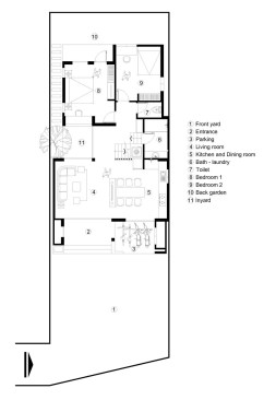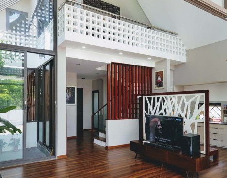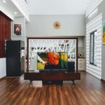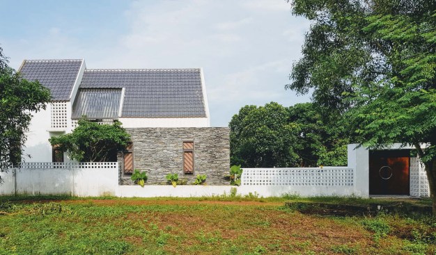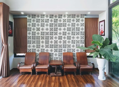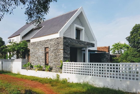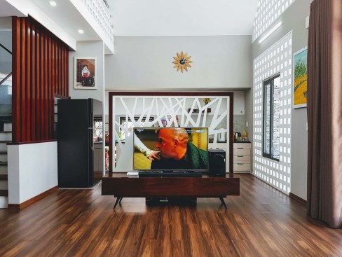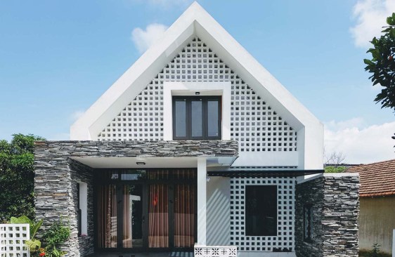 The most impressive feature of the house is the facade using split stone and brick ventilation. Due to a limited budget and the desire to choose custom materials, Hung spent a lot of time traveling through the provinces to select brick and stone. Wanting the construction to be meticulous, he had to pick everything himself.