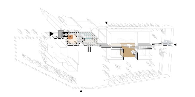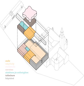 Suppa is a typical Finnish landform, a hollow created when buried blocks of glacier melt out. The ambition of the proposal is to create a flexible organizational system and a bold object representing « The New National ». A simple, holistic arrangement which connects old and new, allowing the institution to function as a unified whole. The proposed Annex facilitates the hosting of extensive and demanding international exhibitions at the National Museum.