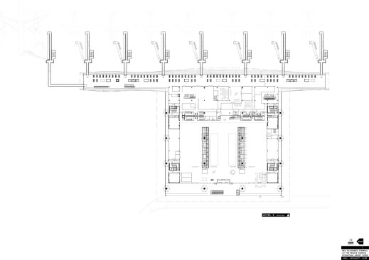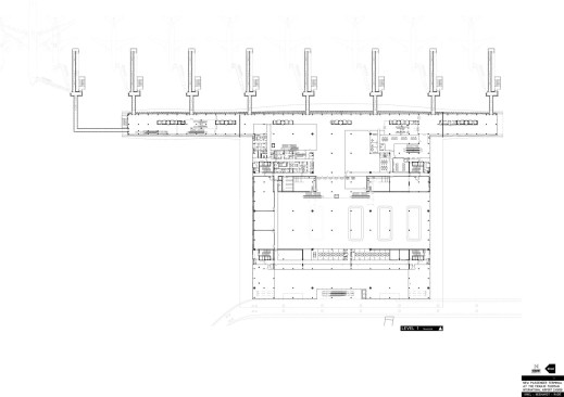 -Arrival level is located at the level “0” ground floor. This level along the north perimeter is also the home of the baggage handling system. At this level on both sides of the terminal there are departure/ arrival hall areas serving bussed passengers.