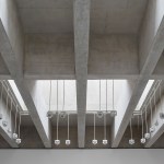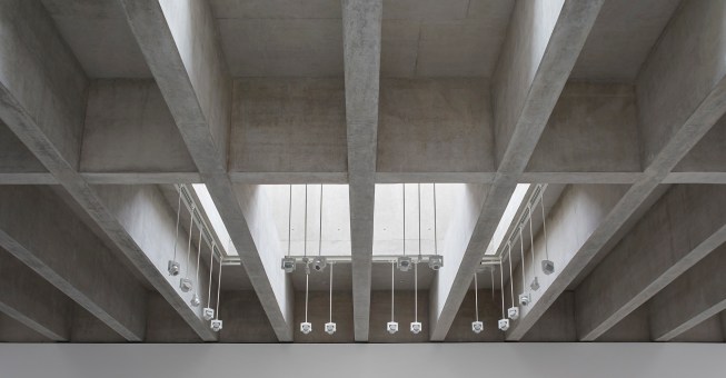 The constraint of the architectural language relaxed when we turned to the roof construction. From the beginning, we were concerned to design a building which answered the needs of Tate but also felt grounded in its rural, coastal setting. The fishing lofts adopted by the St Ives artists in the 1940s were rough constructions in stone with exposed timber joists for their ceilings. These have been adapted into concrete beams to span the 16.5m width of the gallery. Above these sit six large light chambers diffusing the beautiful light of St Ives which brought the artists here a century ago. The entire roof construction is in in-situ cast concrete, continuing the rough no-nonsense sensibility of St Ives.