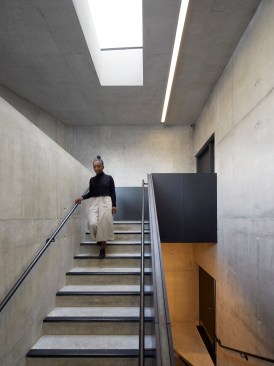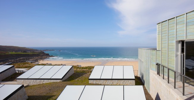 The new gallery is sunk deep into the cliffs, yet it benefits from strong, coastal natural light from above thanks to the insertion of rooflights. The exterior responds to the vernacular architecture of St Ives and the natural forms of the coastline; the generous space and light within belies the discretion of the building’s external form.