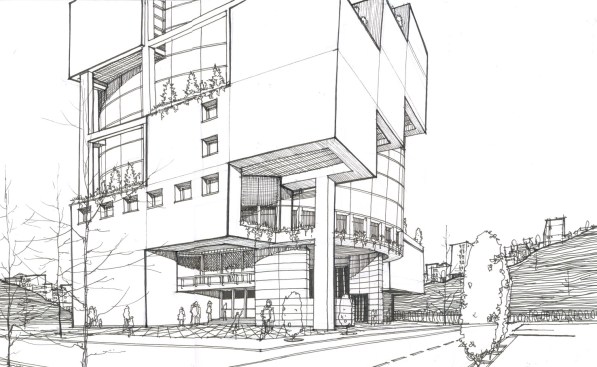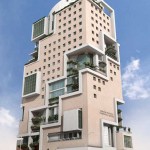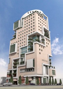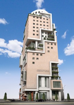 The conceptual form of the building was designed to resemble the Hanging Gardens of Babylon. Furthermore, this concept provide the offices with light and garden views in different directions plus an attractive entrance.