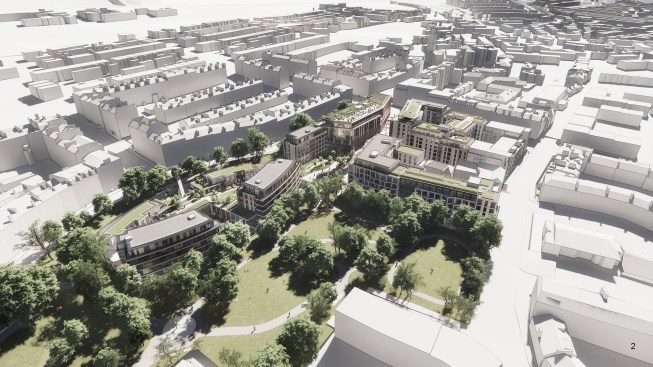 The proposed mixed-use development will create a new urban centre, providing a significant addition of public realm, and includes a hotel, 80,000 sqft of office space and 350 homes. Proposed new buildings to Fettes Row are designed to respond sensitively to the adjacent listed buildings, whilst retaining and strengthening the existing ‘green edge’ boundary of the site.