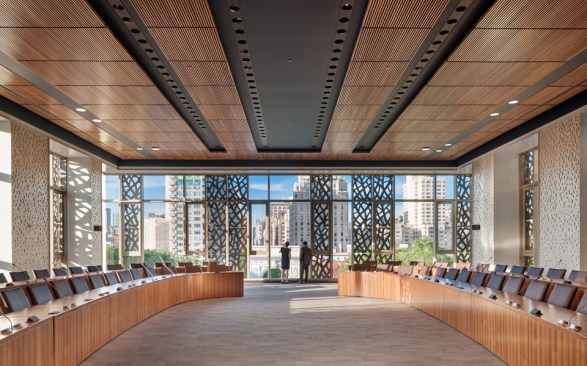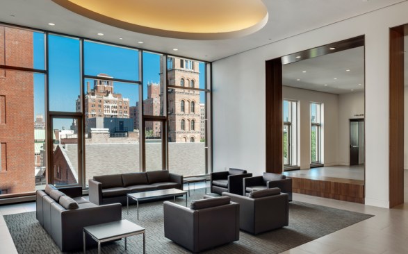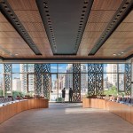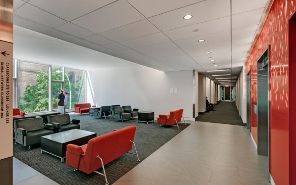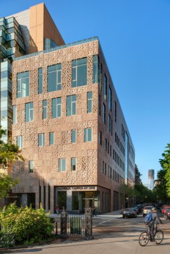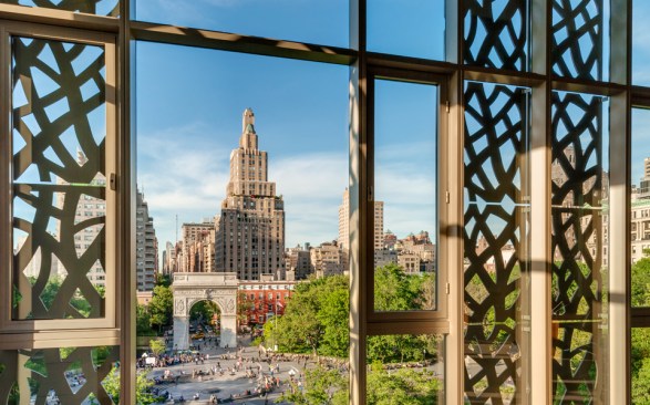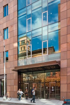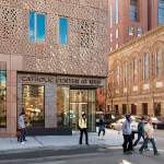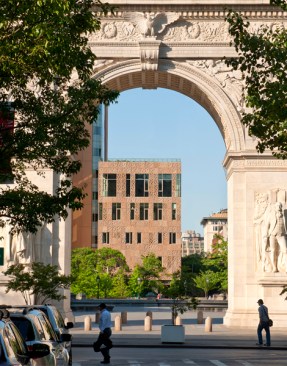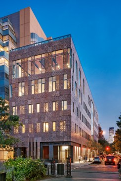 We developed a system of water jet cut, laminated limestone panels that grows upward from a heavier base near the building entrance to a lighter and more delicate screen as the building reaches the sky. The tree of life is an especially poignant image within the hyper-urbanity of the Manhattan site. The inclusive and inviting building serves the entire campus community with classrooms, meeting rooms, offices, and music practice facilities. The unique Global Conference Center is designed to bring together students and faculty from NYU’s campuses around the world and incorporates state of the art multimedia systems to provide the infrastructure for this dialog. The project is located in a highly visible location on the south side of Washington Square Park in New York City. When approaching from the north, the site is directly on axis with 5th Avenue and is framed by the view through the Washington Memorial Arch. The project represents New York University’s design excellence initiative and will achieve a LEED Gold rating.