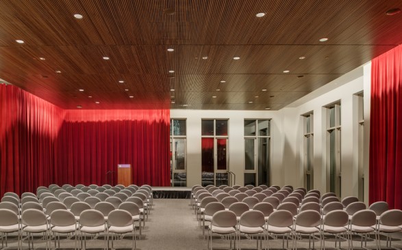 The Center for Academic and Spiritual Life at New York University brings together students and scholars from a wide variety of religious backgrounds into one multi-faith and multi-function building on the NYU campus. This ambitious project, recently completed in January, 2012, provides multi-denominational sacred spaces to be shared by a multiplicity of faiths within a single facility. Because it is intended to provide a home for the dozens of underserved religious organizations on the NYU campus, the design strives to provide a strong expression of the spiritual mission of the building without relying on a singular religious iconography. We proposed that the ‘Tree of Life,’ an image which is shared by all major faiths, be the inspiration for the façade. The image of the tree, with all of its positive connotations (growth, expansive, spreading out of a common root, natural, providing shelter, food, beauty, etc.) together with the strong western architectural tradition of using ornamental motives based on natural forms, particular leaves, were two additional elements that provided even more impulse to the idea of the ‘tree of life.’
