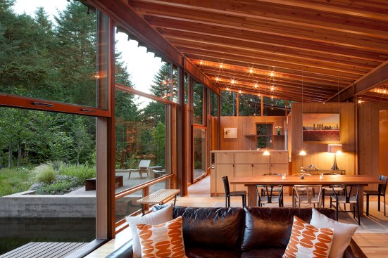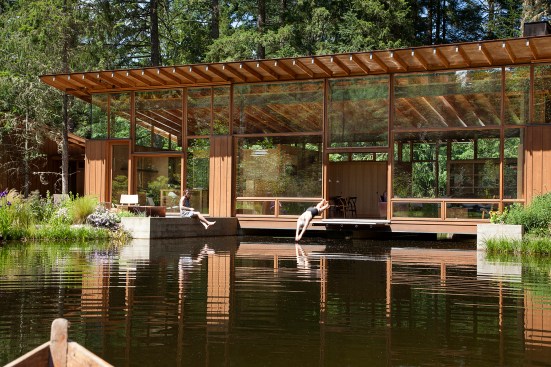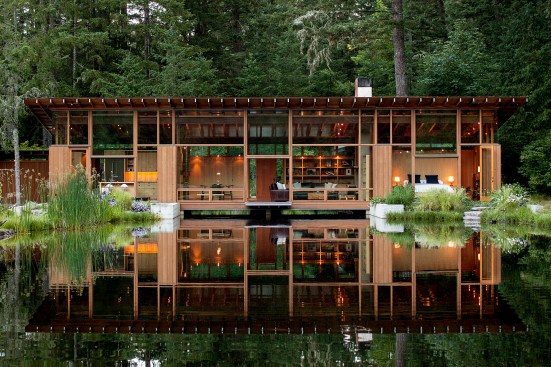 This single-family 1,440-square-foot residence and 550-square-foot guesthouse was designed to broaden the owners already strong emotional connection to the living world. The architect chose the site of an overgrown, man-made pond in an area of the owner’s farm that was not conducive to cultivation.