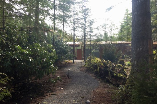 The site plan is organized so that visitors park their vehicles 150 feet away from the house. They then walk through the forest to a bridge crossing a small section of the point, and on to the main entry. The broad vista of the pond becomes visible only upon opening the front door. It is the hope that this experience will be memorable to the visitor.