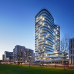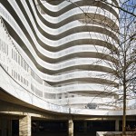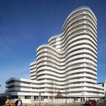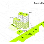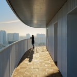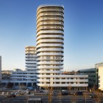 The city’s flow of pedestrians, cars and bicycles and the mixed programme (parking, retail, office space and housing) interweave and embellish the ground floor, creating a “pedestrian level volume.” The building’s transparency, depth and various perspectives engender a dynamism and liveliness around the perimeter of the project, consequently enriching the surrounding environment.