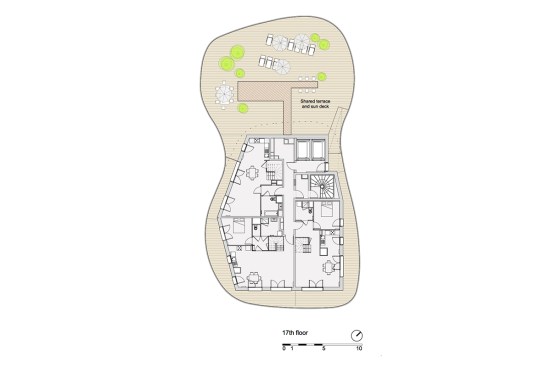 A range of detail on the skyline creates variation in form and invites a number of uses of the various roof terraces. This enables neighboring local residents to appreciate the building’s different scales from a distance whilst also providing diversity and variety for the inhabitants. The design plays on the idea of movement, backgrounds and multiplicity.