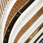 Plant containers are built into the balcony railings of the apartments situated on the lower floors. These flowering baskets allow dwellers to tend aromatic plants and flowers of their choice, whilst the higher floors, above any obstructed views, have balconies that become large panoramic screens.