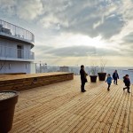 Conviviality must be present in order to ensure optimum living conditions. Two shared terraces have been designed to allow neighbors the possibility to come together and create a shared future. For example a vegetable garden and a greenhouse are integrated into the 10th floor terrace. The organization ‘Bio-T-full’ provide around thirty workshops offering residents the opportunity to participate in group activities, such as the planting and growing of crops. Furthermore, a vast solarium on the sixteenth floor allows residents to organize birthday parties, soirées and other events.