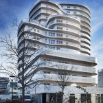 Composed of curved angles and surrounded by undulating balconies, New’R pays homage to Oscar Niemeyer as well as to the architecture of the 1970s French Riviera, (André Minangoy and Michel Marot’s “Marina Baie des Anges”, for example) and finally the hedonistic fantasy of Miami Beach! Sensual and multi-directional, the building is located at a pivotal point between the ‘Mail Picasso’ and the new neighborhood currently being developed alongside the rail infrastructure. Framing and capturing the existing location, New’R embraces the site and forms a new landscape.