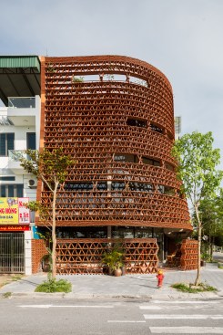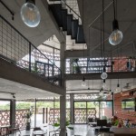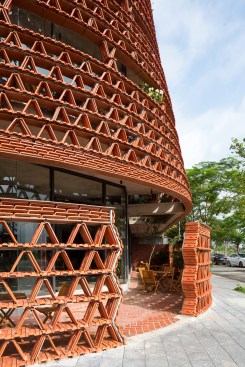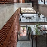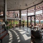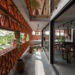 In making a Roof, Tile presents a natural option since it is a material familiar with most Vietnamese people, yet used in an unusual way (as walls, curtains) in an extraordinary space to produce a special different effect (regarding appearance, sense of space and micro-climate quality). The Ngói space functions Cafés (lower space + on the rooftop), Seminar and Exhibition rooms (on the middle floor) with the aim of offering a fresh destination, an inspiring common Roof.